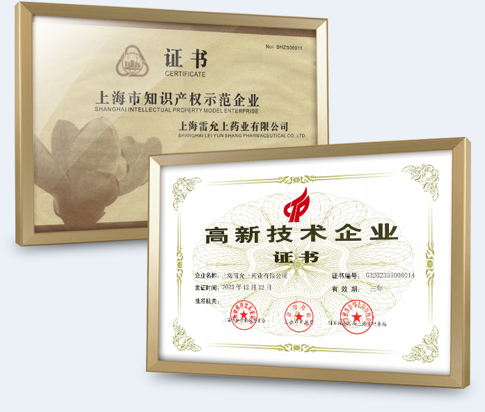 2016年,上海中国·古天乐代言太阳集团科技药业股份有限公司荣列上海市专利工作示范企业,并于2018年底以优秀成绩通过上海市知识产权局验收。2019年,申报第一届上海市知识产权创新奖(保护)并获一等奖。2019年被认定为国家知识产权优势企业。2023年荣获国家知识产权示范企业、上海市创新型中小企业、上海市专精特新中小企业、上海市产教融合型培育企业。